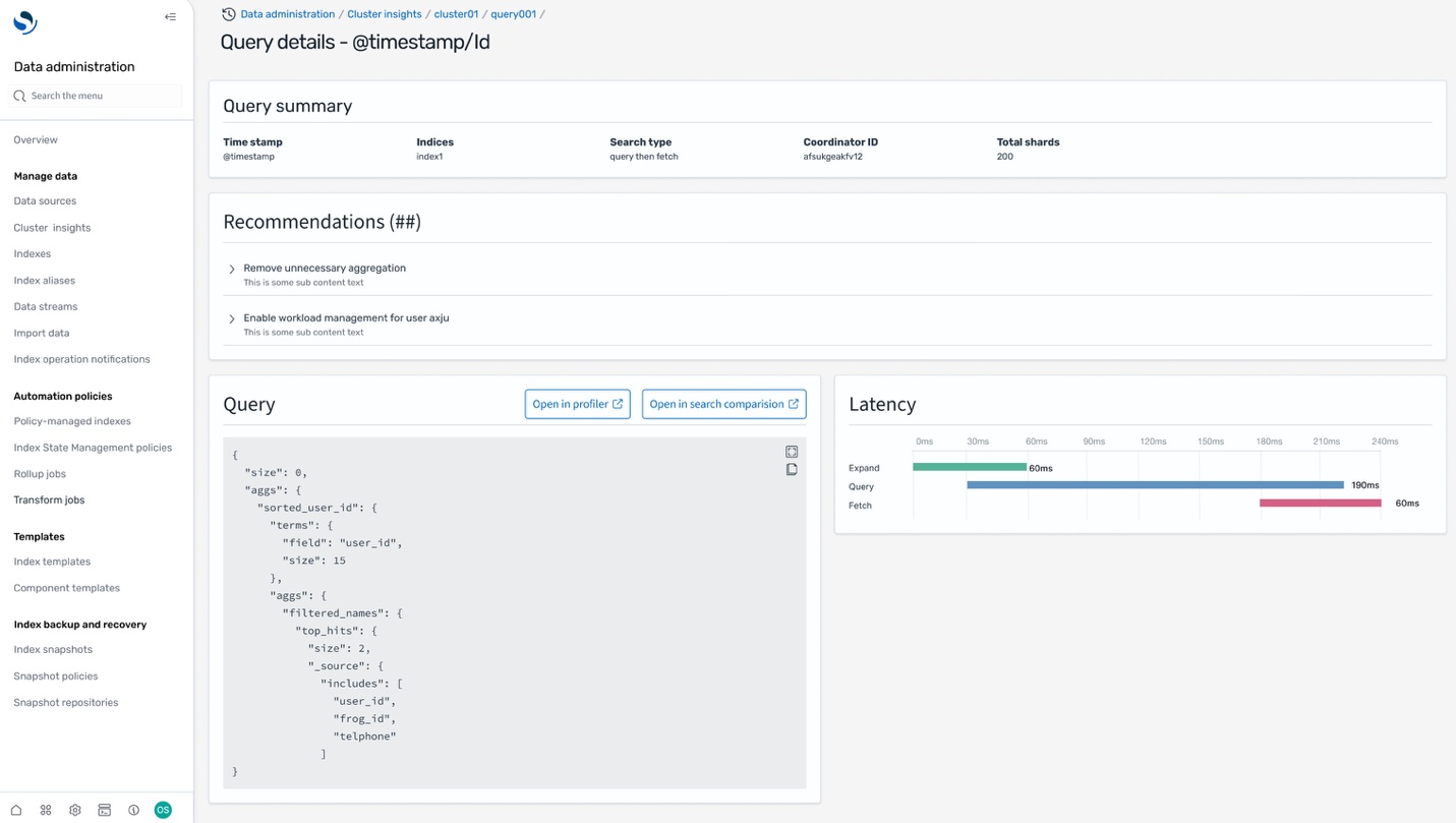 Cluster insights に加えて、Query insights を使用して、Expand、Query、Fetch フェーズ全体で実行されている正確なクエリとレイテンシーを表示することもできます。これにより、検索開発者がクエリをさらに微調整するための貴重なインサイトが得られます。